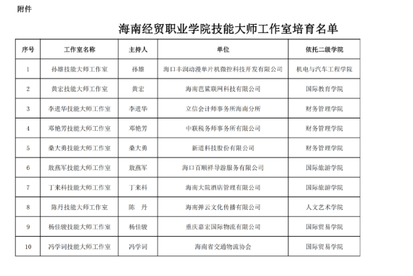 为推动学院高技能人才队伍建设,发挥高技能人才在人才培养、带徒传技、技能攻关、技艺传承、技能推广等方面的作用,海经贸建设成立一批技能大师工作室。